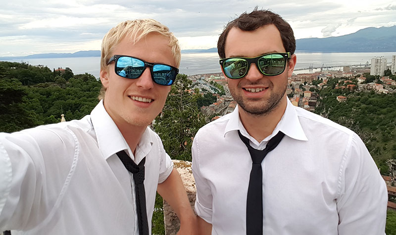 Bei uns handelt es sich um Aimo (links) und Chris (rechts), zwei sympathische, neugierige und gutaussehende Typen, die mit Hilfe der Macht der Maultaschen neue Orte erkunden und auch neue Menschen kennen lernen wollen. Wir sind sehr pflegeleicht und für fast jede Aktion zu haben.